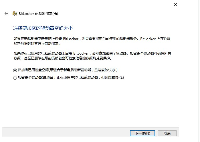 5、選擇要加密的驅(qū)動器空間大小,根據(jù)提示按自己的需求選擇即可。