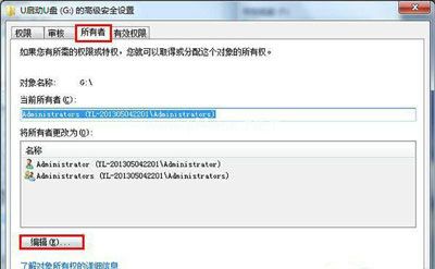 3、選擇“所有者”選項卡,單擊“編輯”按鈕,如下圖所示: