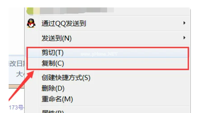 4、鼠標(biāo)右鍵單擊需要復(fù)制的“文件”后選擇“剪貼”或者“復(fù)制”選項(xiàng)。