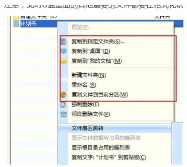 6、右擊我們要顯示的文件夾,比如這里的計(jì)劃書文件夾,選擇復(fù)制到桌面,然后對U盤進(jìn)行格式化操作,徹底消滅病毒,最后再將該文件復(fù)制到U盤里面保存即可。