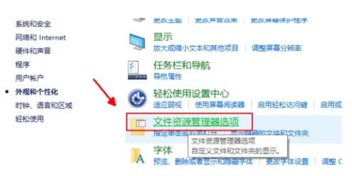 2、打開控制面板窗口以后,選擇”外觀和個(gè)性化“,接著在新的頁面里面選擇”文件資源管理器選項(xiàng)“。