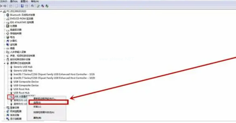 4、對這個“USB大容量存儲設(shè)備”右鍵,選擇啟用就可以了。