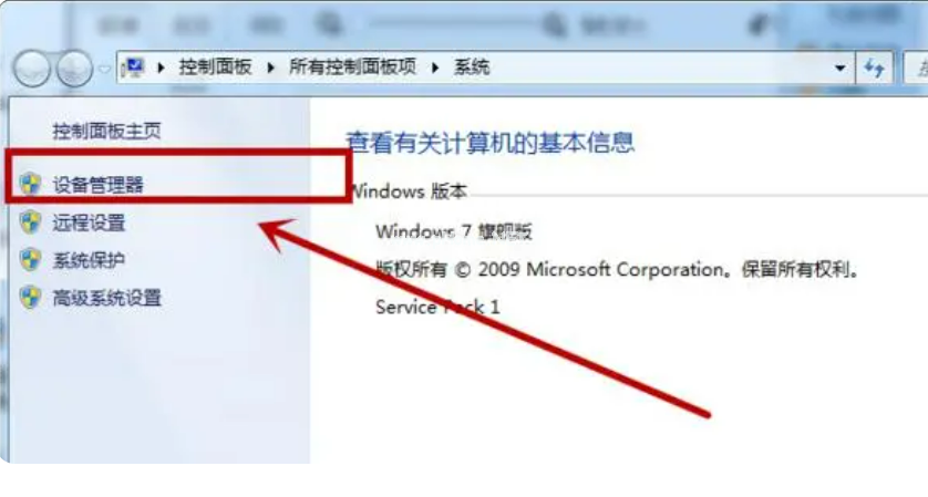 2、進入電腦屬性窗口中,我們點擊選擇“設(shè)備管理器”;
