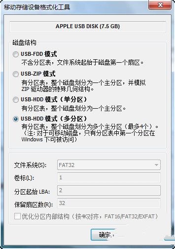 用Bootice格式U盤(pán)為兩個(gè)分區(qū),具體看圖。