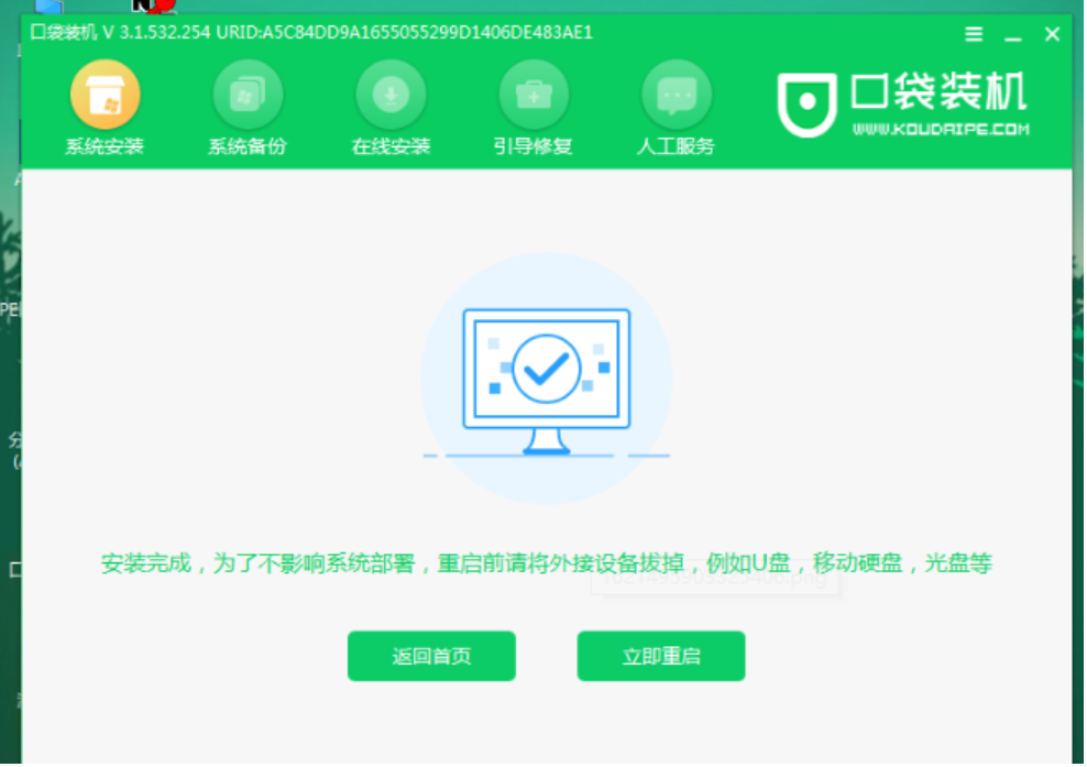 7、系統(tǒng)安裝完成,單擊頁面下方【立即重啟】。