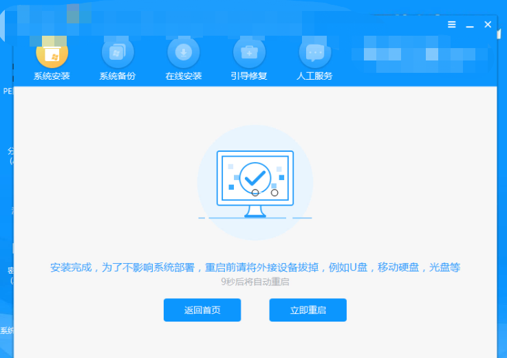 7、耐心等待系統(tǒng)安裝完成后,選擇重啟電腦。