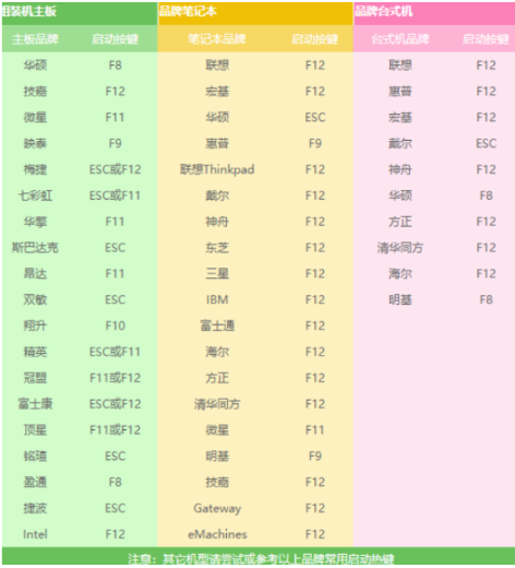 5、重啟電腦,開機時按熱鍵進入 Bios 或者快速引導(dǎo)菜單,進入后用方向鍵選擇U盤選項。U盤啟動快捷鍵一般為 F12,有些可能是 Esc、Del、F2 之類的。具體可以參考下圖。