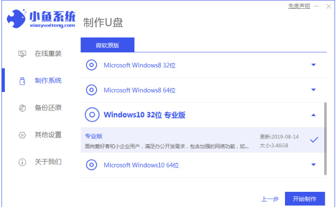 2.選中win10的鏡像,點擊【開始制作】。