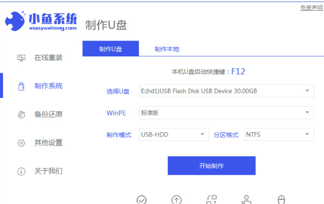 1、把u盤插到電腦當中,打開工具,選中制作系統(tǒng),點擊開始制作。