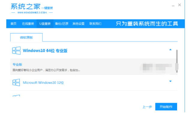 2、選擇需要重裝的系統(tǒng),點(diǎn)擊開始制作。
