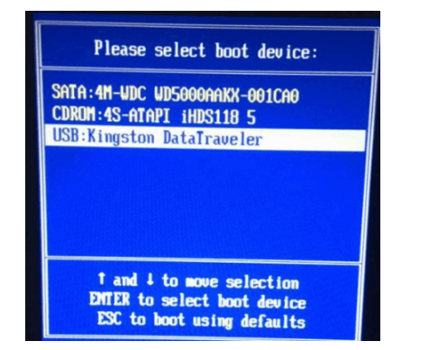 4、開機(jī)不斷按啟動(dòng)熱鍵,選擇u盤啟動(dòng)回車。