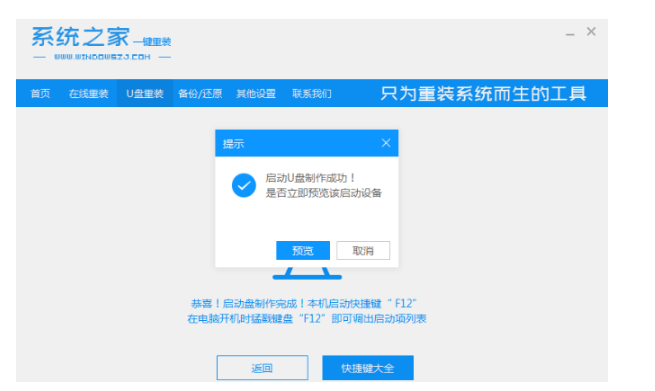 3、預(yù)覽啟動(dòng)熱鍵,返回重啟電腦。
