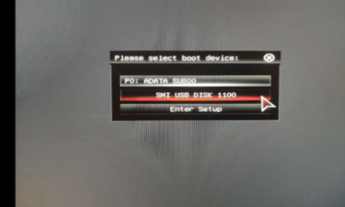 5、隨后將u盤啟動盤插入到需要重裝的電腦,出現(xiàn)開機(jī)界面后不斷按下U盤啟動快捷鍵,進(jìn)入系統(tǒng)啟動菜單后,設(shè)置u盤為第一啟動項。