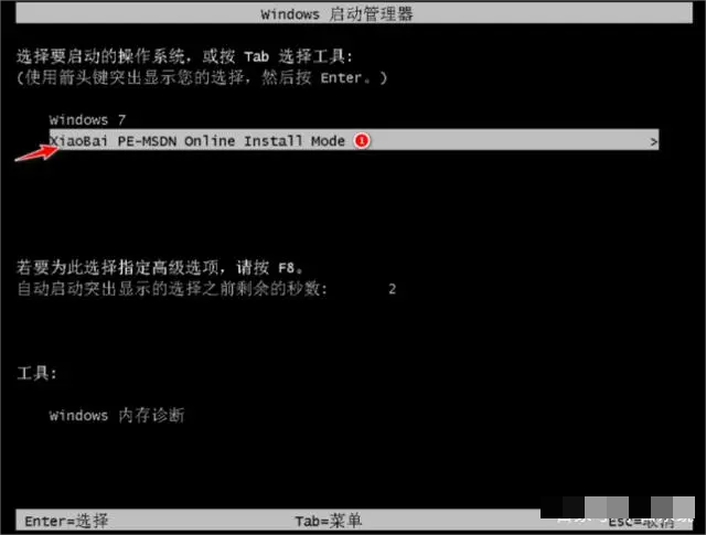 5、重啟之后會(huì)進(jìn)入到pe系統(tǒng)的桌面當(dāng)中,在 PE 系統(tǒng)中選擇 XiaoBai PE-MSDN Online Install Mode 選項(xiàng)進(jìn)入PE 系統(tǒng)。
