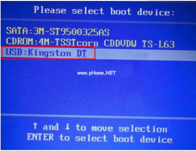 2、將準(zhǔn)備好的大白菜啟動U盤插入電腦,開機(jī)或重啟電腦,按U盤啟動快捷鍵進(jìn)入優(yōu)先啟動項設(shè)置頁面,選擇U盤選項(一般是帶USB的選項) ,按回車鍵進(jìn)入;