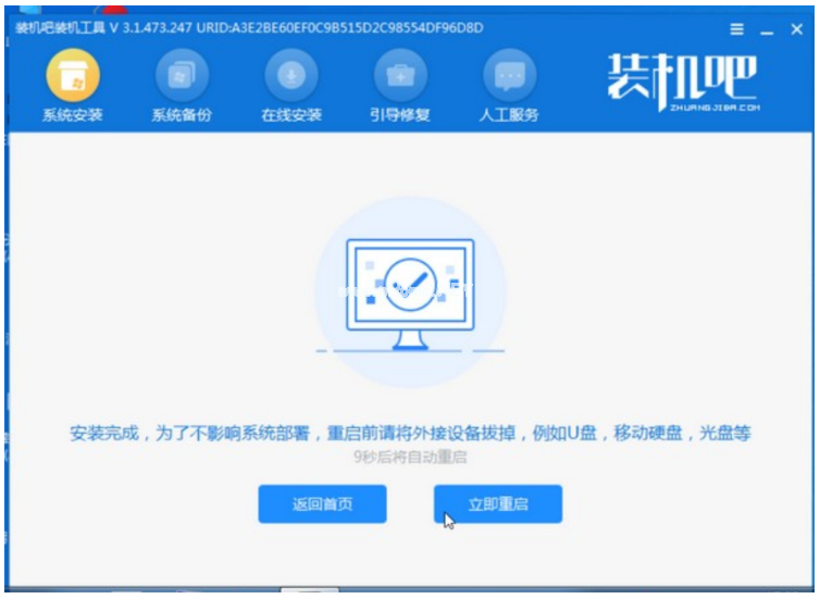 6、系統(tǒng)安裝完成之后,再次點(diǎn)擊立即重啟電腦。