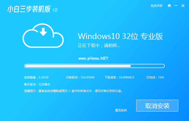 下載小白三步裝機工具,打開并運行,點擊立即重裝。