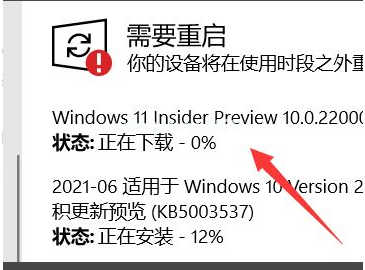 5、選擇后,重啟電腦,即可開始win11系統(tǒng)更新。