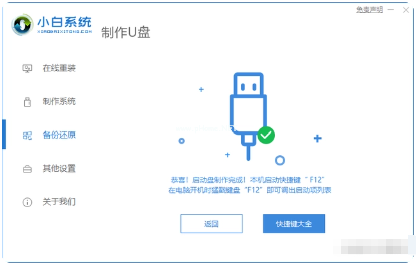 5、完成資源和驅(qū)動(dòng)下載后,自動(dòng)進(jìn)行制作完成后,可先預(yù)覽下電腦啟動(dòng)快捷鍵,至此,小白啟動(dòng)u盤(pán)制作完成,可以用它來(lái)進(jìn)行電腦的修復(fù)或者重裝系統(tǒng)等操作。