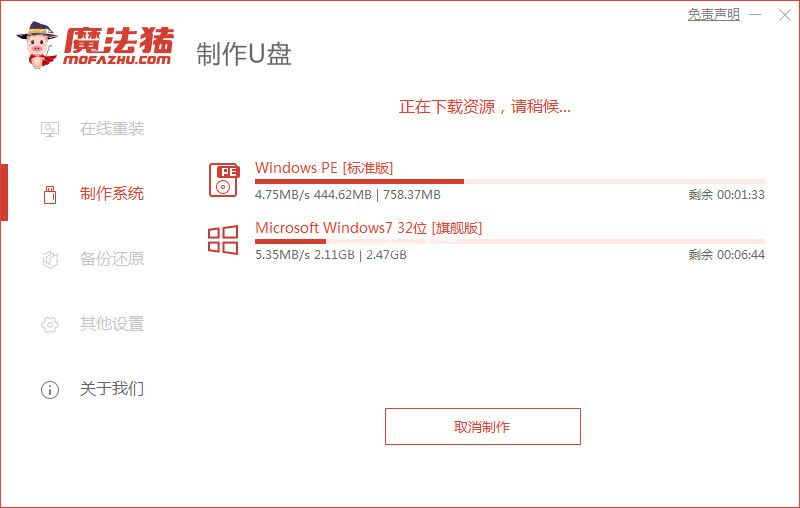 方法一:使用魔法豬工具的制作系統(tǒng)功能完成win7系統(tǒng)安裝
