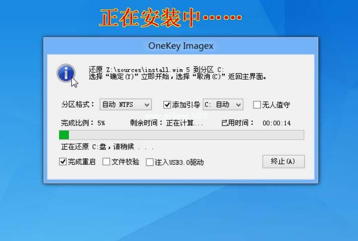 6、重啟電腦后系統(tǒng)就會(huì)自動(dòng)進(jìn)行安裝,耐心等待完成即可。