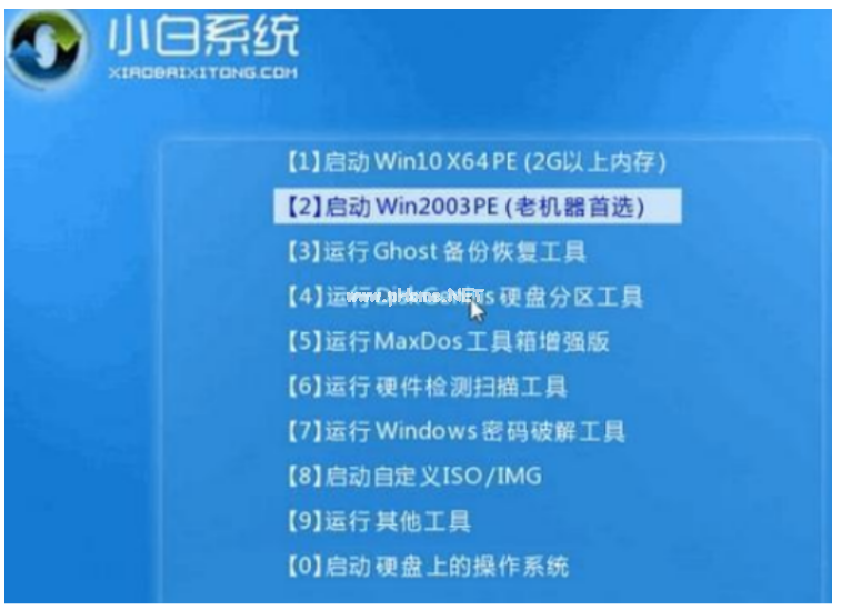 4、電腦重啟過程中選擇U盤啟動(dòng),在進(jìn)入小白系統(tǒng)PE界面時(shí),選擇第一項(xiàng)“啟動(dòng)win10 x64PE(2G以上內(nèi)存進(jìn)入)”進(jìn)入電腦系統(tǒng)。