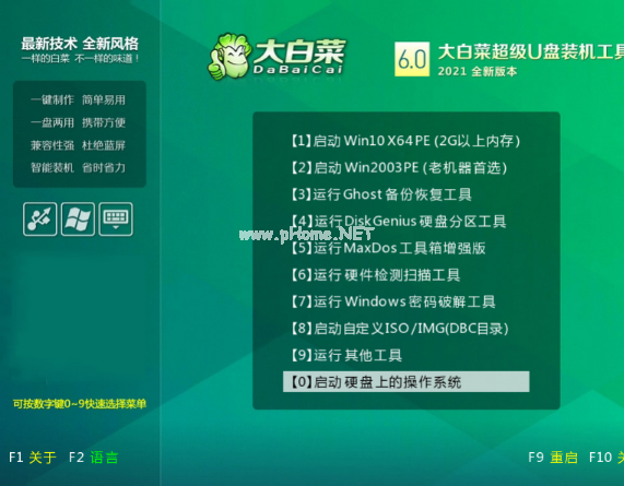 軟件版本:大白菜U盤啟動(dòng)工具v6.0+小白一鍵重裝系統(tǒng)v2290