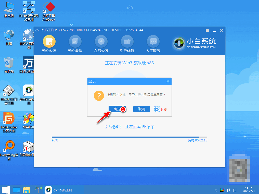 9、確認(rèn)進(jìn)行PE引導(dǎo)菜單回寫,點擊確定。