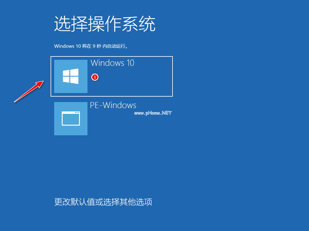 10、重啟后進(jìn)入win7pe系統(tǒng),選擇windows10,回車。