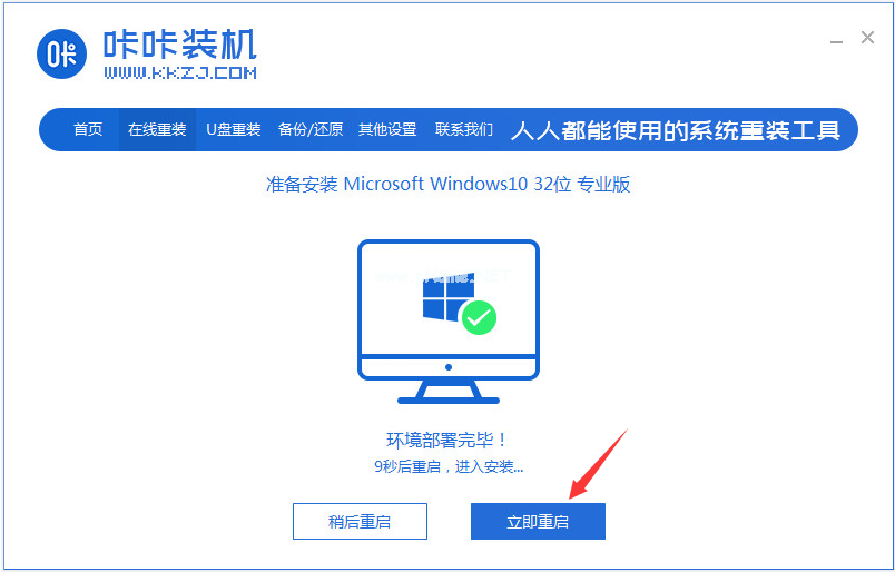 3、系統(tǒng)文件下載好及驅(qū)動備份好后,會提示系統(tǒng)部署成功,接著會自動重啟電腦繼續(xù)安裝系統(tǒng),我們只要點擊立即重啟即可,等待軟件完成所有安裝步驟,即可完成整個系統(tǒng)的安裝,如下圖所示: