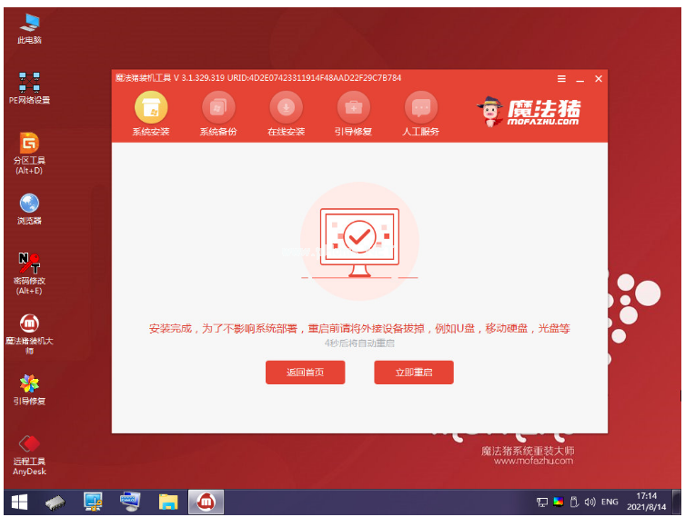 5、電腦環(huán)境部署完畢之后,我們選擇立即重啟電腦。