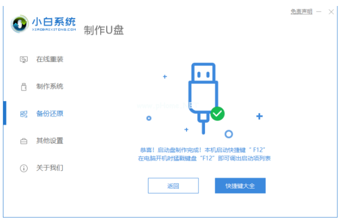 3、當(dāng)制作完成之后,可以先預(yù)覽需要安裝的電腦主板的啟動(dòng)熱鍵,再拔除u盤退出。