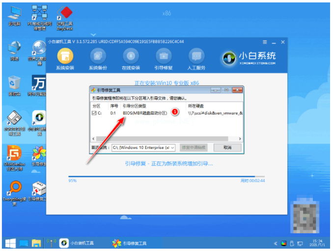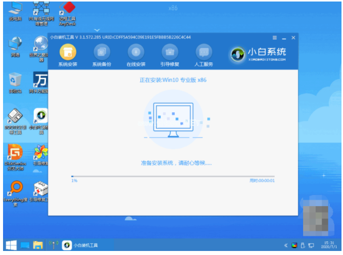 5、打開(kāi)小白裝機(jī)工具安裝系統(tǒng)到c盤,等待軟件自動(dòng)安裝,完成后就重啟。
