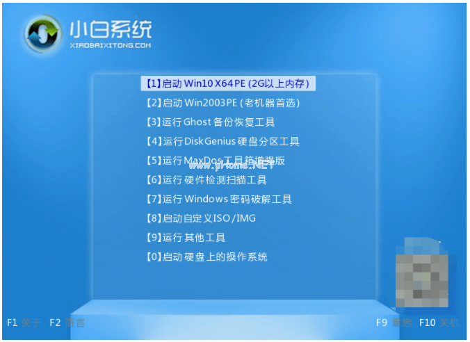 2、插入u盤始,按回車進(jìn)入第一項(xiàng)小白pe系統(tǒng)。