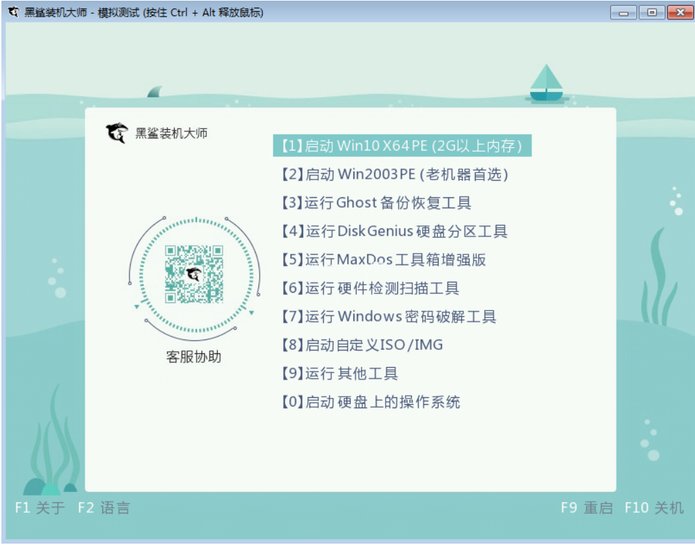 6.如果電腦中出現(xiàn)黑鯊PE菜單選擇項(xiàng)的測(cè)試窗口,證明啟動(dòng)U盤制作完成,直接關(guān)閉該測(cè)試窗口。