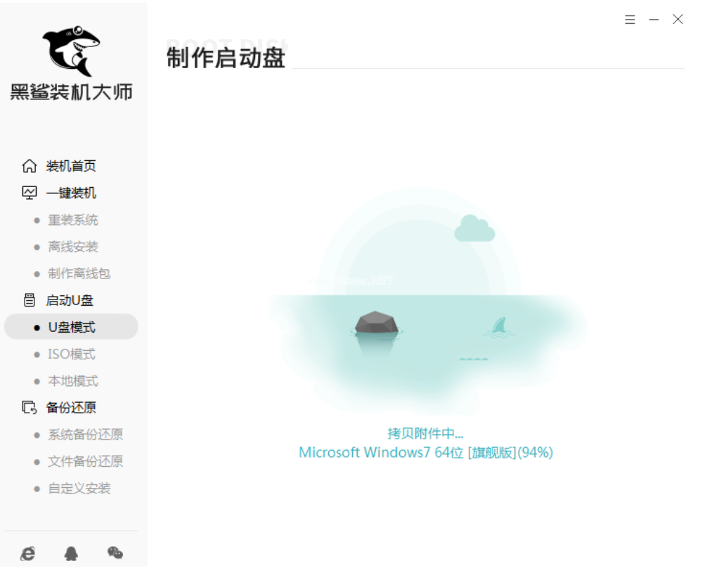 4.Win7系統(tǒng)文件下載完成后,黑鯊開(kāi)始將系統(tǒng)文件寫入U(xiǎn)盤。