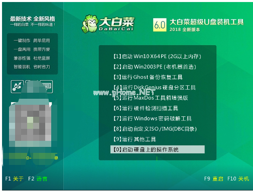 2、進(jìn)入大白菜主菜單界面后選擇“啟動(dòng)Win10 X64 PE(2G以上內(nèi)存)”,按回車進(jìn)入PE系統(tǒng)。