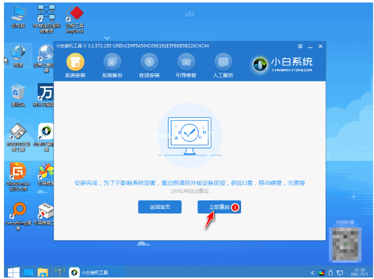10、電腦系統(tǒng)安裝完成之后,然后選擇立即重啟電腦。