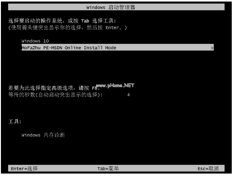 6、直至電腦進(jìn)入到windows啟動(dòng)管理器的界面,然后選擇帶有光標(biāo)的項(xiàng),再按回車鍵進(jìn)入pe系統(tǒng)。