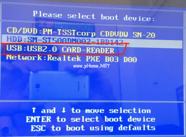 6、將u盤插入需要重裝的電腦接口上,開機(jī)快速按熱鍵進(jìn)入快速啟動(dòng)菜單頁面,選擇u盤啟動(dòng)項(xiàng)按回車。