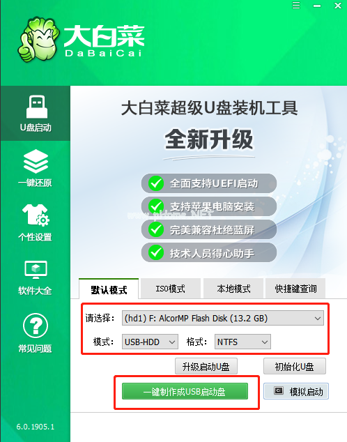 軟件版本:大白菜v5.2