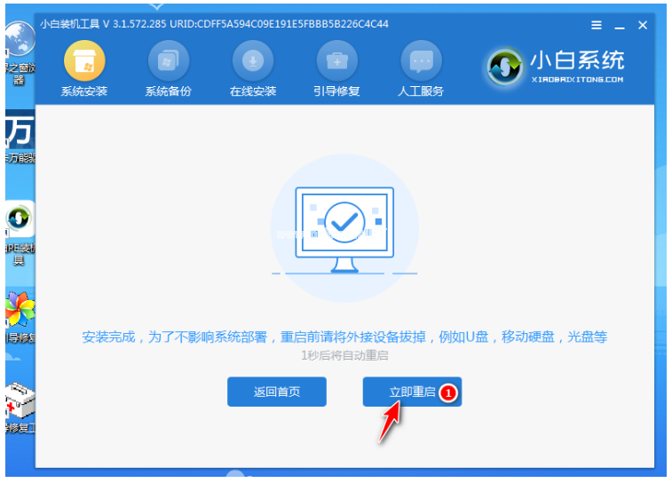 8、大家耐心等待系統(tǒng)安裝完成,電腦部署完成后,立即重啟選項(xiàng)。