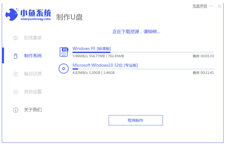 1、我們首先下載安裝小魚(yú)一鍵重裝系統(tǒng)軟件并打開(kāi),然后選擇制作U盤,再鼠標(biāo)點(diǎn)擊開(kāi)始制作。