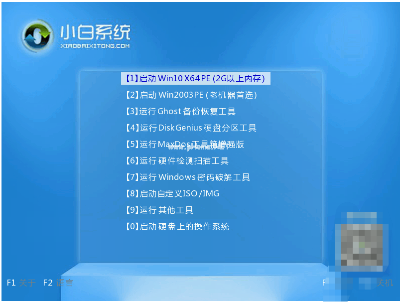 6、進(jìn)入到pe系統(tǒng)頁面第一個(gè)選項(xiàng)進(jìn)行pe系統(tǒng)界面。
