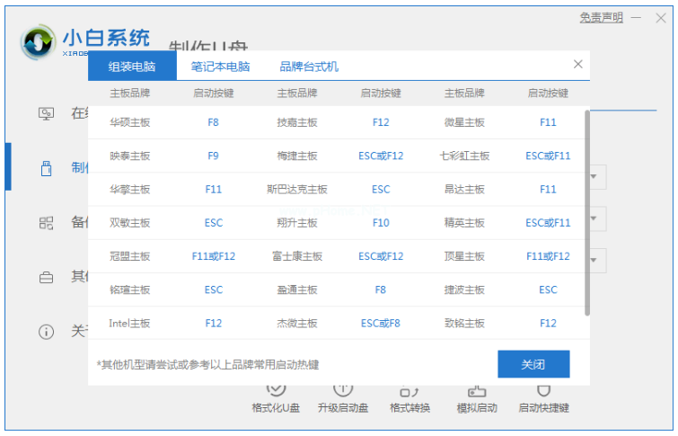 3、裝機軟件制作u盤啟動盤成功后,快速預覽需要安裝的電腦主板的啟動熱鍵,再拔掉u盤退出。