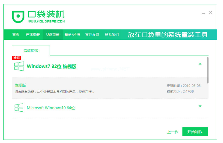 2、然后選擇想重裝的系統(tǒng)鏡像,點(diǎn)擊開(kāi)始制作。