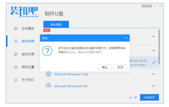 2、選擇要安裝的系統(tǒng)版本,點(diǎn)擊開(kāi)始制作。