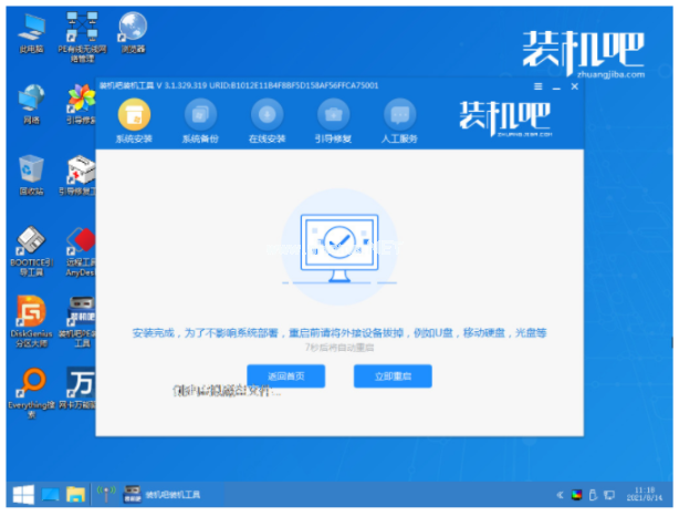 7、系統(tǒng)安裝完成之后,選擇重啟電腦。