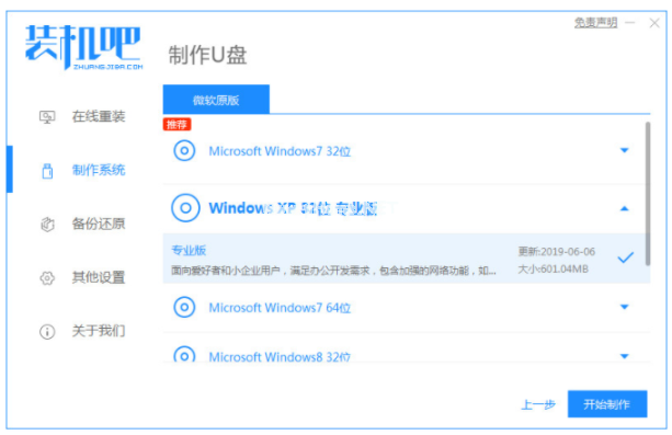 2、選擇需要重裝的鏡像,點(diǎn)擊開(kāi)始制作。