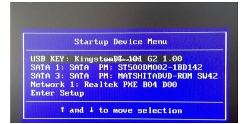 4、在電腦上插入U(xiǎn)盤,重啟電腦后不停按F12、F11或Esc等按鍵,在彈出的啟動(dòng)菜單中選擇U盤選項(xiàng)。